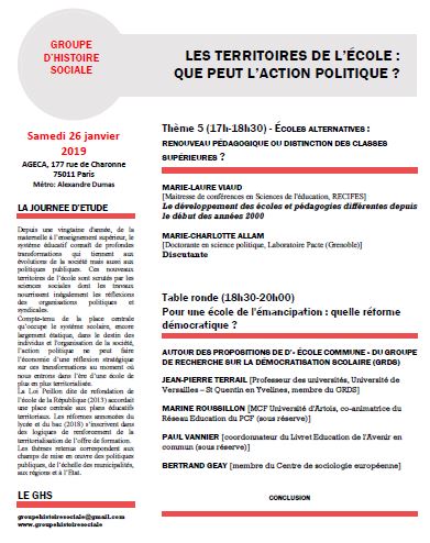 Les territoires de l’école : que peut l’action politique ? (journée d’étude)