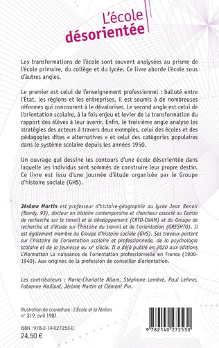 Le second angle est celui de l’orientation scolaire, à la fois enjeu et levier de la transformation du rapport des élèves à leur avenir. Enfin, le troisième angle analyse les stratégies des acteurs à travers deux exemples, celui des écoles et des* pédagogies dites « alternatives » et celui des catégories populaires dans le système scolaire depuis les années 1950. Un ouvrage qui dessine les contours d’une école désorientée dans laquelle les individus sont sommés de construire leur propre destin. Ce livre est issu d’une journée d’étude organisée par le Groupe d’histoire sociale (GHS).